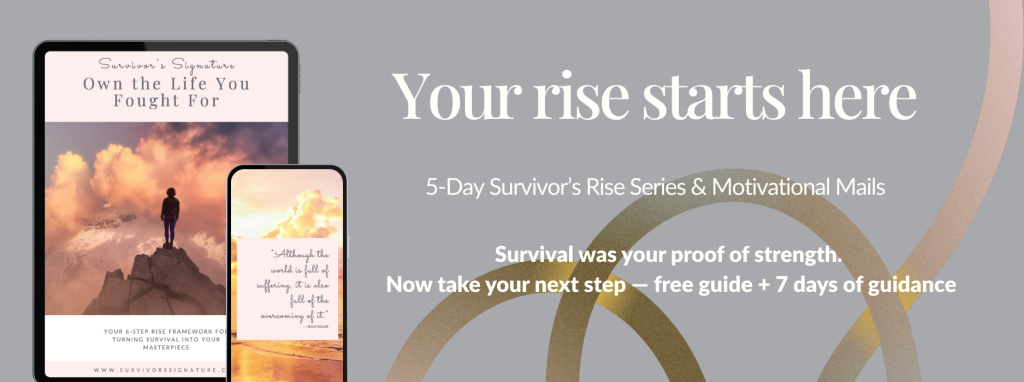As Survivor’s Signature grows, so will the ways we rise together — from retreats and summits to future certification and legacy projects. Because your survival is not just about you. It’s about creating impact, beauty, and meaning for others too.